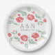 Platos de papel con monograma floral de campo rojo