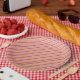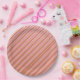 Platos de papel con rayas rosadas y doradas