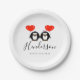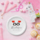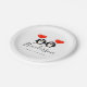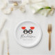 Platos de papel de dibujos animados de pareja de pingüinos lindos para boda. Suministros elegantes para una fiesta de boda para la novia y el novio, pareja casada, marido y mujer o recién casados. Plantilla de diseño de tipografía con guión elegante. Agregue su propio apellido y fecha establecida de matrimonio. Suministros de fiesta desechables personalizados para fiesta de jardín y más. También ideal para barbacoa de despedida de soltera.