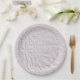 Estos platos de papel grandes con un diseño arrugado son una lavanda encantadora que se ajustará a las duchas de boda o cualquier ocasión con colores pastel.