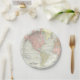 Platos de papel de mapa del mundo con fondo de mapa del viejo mundo. Estos platos de papel de mapa se pueden personalizar fácilmente para su evento simplemente agregando el texto de su elección en el estilo de fuente que prefiera.