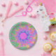 Platos de papel de ráfaga de sol arcoíris de neón personalizables.