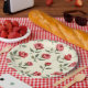 Platos de papel de rosas rojas al acuarela - Decoración de fiesta floral rústica vintage