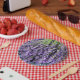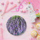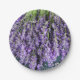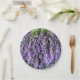 Un conjunto de platos de papel con una fotografía de tallos de lavanda. ¡Hermoso tema púrpura!