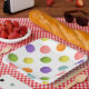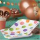 Platos creativos para fiestas o eventos de equipo de tenis con un colorido patrón festivo de pelotas de tenis.