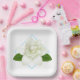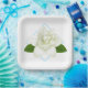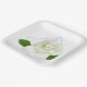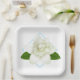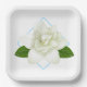 La bandeja de papel para fiestas se muestra en blanco con una impresión artística de una hermosa flor de gardenia.