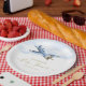 Platos de papel para baby shower de avión antiguo con un avión vintage en un fondo de nube azul. Estos platos de papel de avión antiguo se pueden personalizar fácilmente para su evento simplemente agregando su texto. También puede mover y cambiar el tamaño del avión según sea necesario.