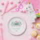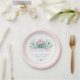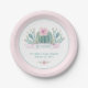 Platos de papel para baby shower de cactus con cactus floral rosa lindo en un fondo rosa y verde. Puedes agregar tu propio texto para personalizar.