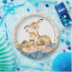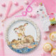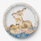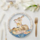 Platos de papel para baby shower de niño con ciervo en el bosque con adorable madre y cría de ciervo en un bonito fondo floral azul y dorado. Puede personalizar fácilmente estos adorables platos de papel para su evento simplemente agregando el texto que desee. También puede cambiar el color de fondo. Este es un diseño impreso sin purpurina real.