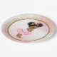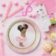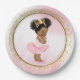 Platos de papel para baby shower de princesa con adorable bebé princesa con tutú rosa y collar de perlas sobre un hermoso fondo rosa y dorado. Estos lindos platos de papel para baby shower de princesa se personalizan fácilmente con texto. También puedes mover al bebé según sea necesario.