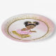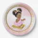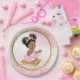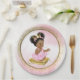 Platos de papel para baby shower de princesa con adorable princesa bebé niña que lleva un precioso tutú rosa y collar de perlas sentada en una almohada dorada sobre un hermoso fondo rosa y dorado. Estos adorables platos de papel para baby shower de princesa se pueden personalizar fácilmente con texto. También puedes mover al bebé y la almohada según sea necesario.