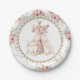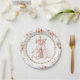 Platos de papel para baby shower de bebé zorro con adorable zorro bebé niña en un hermoso fondo floral de tipi. Estos adorables platos de papel de zorro tribal y tipi para baby shower de niñas se personalizan fácilmente con texto.