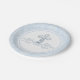 Platos de papel para bautizo de niño con hermoso remolino de perlas azules y cruz sobre fondo de damasco azul. Estos elegantes platos de papel azules para bautizo se personalizan fácilmente añadiendo texto. También puedes mover la cruz según sea necesario en estos platos de papel para bautizo, bautismo y primera comunión.