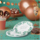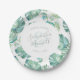Platos personalizados botánicos para su boda con tema tropical o luau o ducha de novia presentan un borde de hojas de palma monstera de greenery con el nombre de la novia y el novio personalizado y la fecha de la ducha. Para ver la decoración de fiesta aloha tema playa a juego visite www.zazzle.com/dotellabelle