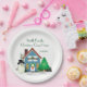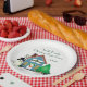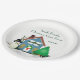 Bienvenidos, invitados a su hogar de vacaciones con un plato de papel hecho a medida. Personalice este plato con sus propias palabras. ***Este diseño gráfico fue creado a partir de ilustraciones de dominio público que se superpusieron en el plato.