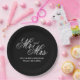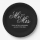 Platos de papel para fiesta de boda de lujo totalmente negros. Diseño de plantilla de tipografía de letra cursiva elegante para fiesta de recepción elegante. Color personalizable para que coincida con tu tema. Personaliza con el nombre de la novia y el novio más la fecha de la boda. Suministros de fiesta glamurosos para tu día especial.