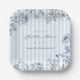 Decora la mesa de tu fiesta de despedida de soltera "algo azul" con nuestros platos de papel personalizados con rayas de chambray clásicas y arte de línea floral navy.