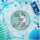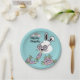 Sirve dulces golosinas de Pascua con un serio estilo retro. Estos platos de papel de Pascua de tamaño para postre presentan a un conejo genial con gafas de flores, mordisqueando una zanahoria pastel giratoria y groovy y difundiendo buenas vibras con la frase "Hippity Hoppity". Contra un suave fondo azul pastel, este diseño pastel juguetón captura perfectamente una estética de Pascua vintage inspirada en hippies.