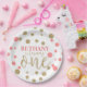 Estos platos de papel para primer cumpleaños con brillo rosa y dorado son perfectos para cualquier niña que cumple uno!