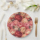 El plato de papel para fiestas se muestra con una impresión de hermosas flores de peonía.