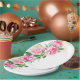 Este plato de papel se muestra con una hermosa impresión de peonías rosadas.