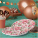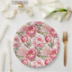 El plato de papel para fiestas se muestra con una encantadora impresión de flores de peonía rosadas.