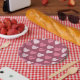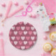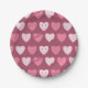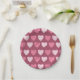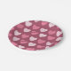 Algunos platos de papel rojo frambuesa con un divertido estampado de corazón rosa .