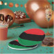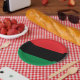 Platos de papel rojos, negros y verdes