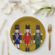 Trio de los Nutcracker de los navidades - Tres Nutcrackers están de pie uno al lado del otro sobre un sólido fondo de oro. El primer petardo está vestido de azul y blanco con adornos dorados. El petardo central está vestido de rojo y oro con adornos dorados. El tercer petardo está vestido de verde y blanco con adornos plateados. Cada una de estas galletas nudistas está disponible por separado en diversos regalos y productos de Zazzle. Elija cualquiera de los tamaños de las placas de papel.