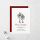 Feliz tarjeta de felicitación navideña, con palmeras botánicas y ilustracion de luces de cuerda. Con letras de tipografía de personalizable, añades tu propia información. Una forma tropical envía los deseos de vacaciones a amigos y familia desde la playa.