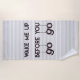 NewParkLane - la toalla de playa, con cita divertida "me despierta antes de que usted vaya vaya", las letras de la canción del Wham, en una diversión, tipografía moderna con las letras colgantes, en negro. Contra un fondo gris y blanco suave.