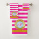 Playa Monogramada de franjas doradas rosadas de ve