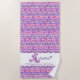 Personalizado Un nombre en monograma que significa toalla de playa. Letra inicial dibujada a mano Un nombre en monograma y significa toalla chica en color púrpura, rosa y blanco. Ideal para un regalo personalizado para un chica que tiene un nombre que comienza con la letra A. En este ejemplo se lee Aurora Radiant diosa del amanecer, brillante y seductora, o se puede personalizar el texto con su propio nombre y mensaje o palabras. Hace un regalo único de chicas, cumpleaños, vacaciones o celebración. © Letra tipográfica A flores y corazones dibujando a mano y patrón creado de forma única por Sarah Trett. www.sarahtrett.com para www.mylittleeden.com