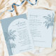 Guía a sus huéspedes durante su día especial con esta tarjeta Boda Itineraria Palm Tree Beach Dusty Blue. Con una apacible paleta azul polvorienta y un elegante diseño de palmeras, esta tarjeta es perfecta para una boda de temática playera o de destino. Mantén a tus invitados informados con estilo con este moderno e minimalista itinerario boda que capta la esencia de tu celebración costera.