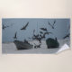 Playa Pelícanos alrededor de los barcos pesqueros Toalla