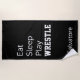 Haga un chapoteo en la piscina o la playa con esto toalla de playa de lucha personalizada. Coma, duerma, juegue, LUCHE. Usted puede modificar para requisitos particulares cambiando color de fondo también.