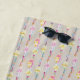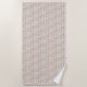 Una toalla de playa con toallas de bonito, originaria de Bohemia, en tonos turquesa, rosa y amarillo dorado, con un fondo marrón claro que se puede cambiar a tu elección de color si es necesario. Coincide con una gama de otros productos de arte acuático de abalorios y plumas. Pintura y diseño de acuarelas únicas de Sarah Trett. www.sarahtrett.com para www.mylittleeden.com