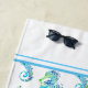 Esta toalla de playa se muestra en un color blanco con un bonito diseño de caballito de mar colorido.