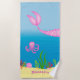 Personalice esta toalla de color brillante para la piscina o la playa con el nombre de su hijo u otro texto opcional. La escena submarina super linda incluye una cola de sirena rosa, un pulpo rosa con conchas y acentos de arrecife de coral. Simplemente edita tu texto en el sencillo editor de Zazzle. Vea la colección de diseños de coordinación en KidsUnique Gifts on Zazzle.