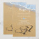 Esta moderna playa tropical, los corazones de amor en la arena y la invitación a bodas con temática oceánica, es perfecta para el descanso, el destino, bodas en la playa o para aquellos que tengan un tema náutico, de playa o oceánico. El gráfico es el de una playa pequeña con el océano a lo lejos y dos corazones de amor dibujados en la arena con las iniciales de las parejas. La imagen de la playa de arena de este hotel es de amor y se muestra a ambos lados de la invitación a una boda con temática playera. Hay campos de plantilla de texto en ambos lados, lo que garantiza que puede agregar detalles adicionales incluyendo rsvp, registro de regalos, detalles de recepción, menú, direcciones y más. Esto le ahorrará dinero y franqueo ya que reduce el número de elementos que necesita incluir con su invitación.