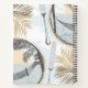 Magnífico cuaderno de recetas para cocinar y cocinar, con un plato tropical de playa y cubiertos de plata con frondas de palmeras de estilo vintage y colores envejecidos.