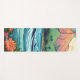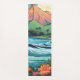 La relajante escena de la playa ilustrada incluye montañas, olas y flores naranjas y rojas. Ideal para practicar yoga, stretching y todas tus necesidades de fitness. Personalice con su nombre, iniciales o cualquier texto que elija o elimine por completo. El estilo de letra y el color son personalizables. El reverso es azul acuático sólido, pero se puede cambiar fácilmente.