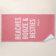 ¿Necesitas algo para hacerte notar a ti y a tu piel de sol en la playa? No busque más y venga a Beaches Booze & Besties'Beach Toalla para este fin de semana perfecto para chicas. ¡Es sólo el accesorio que necesita para sus vacaciones! Personalizar con su nombre y elección de color que se adapte a su estilo.