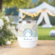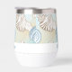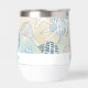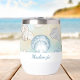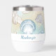 Este vaso de vino termal de temática costera personalizado es perfecto para pasar el día en la playa, con un patrón de conchas a mano en tonos azules y marrones, con un fondo abstracto de color agua y arena. Si quieres este diseño en otros productos, por favor contacta conmigo a través de Zazzle Chat.