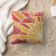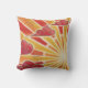 Un sol dorado y naranja y el viento sopla nubes rojas y rosas por el cielo. Tira una almohada con un diseño de personalizable dorado, naranja, rojo, rosa y blanco para que puedas personalizar con tu propio texto, imágenes e ideas. Un lápiz original de color y un dibujo de tinta metálica de Jess Perry.