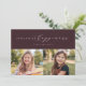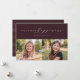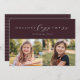 Esta elegante tarjeta fotográfica presenta un tratamiento tipo Holiday Happiness en blanco contra un rico fondo de ciruela con dos fotos horizontales. La parte trasera está decorada con un color de vino a rayas. Esta tarjeta de vacaciones es la manera perfecta de enviar saludos a la familia y amigos.