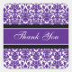Boda Gracias pegatinas de sello para sobres en elegante tintage morado oscuro, negro y blanco clásico adamascado floral, delicado y bonito.