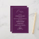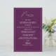 Elegante, elegante y moderno. La clave de este diseño es su elaborado papel personalizado y su sencilla y elegante tipografía. Fondo púrpura de ciruela, con textura intrincada y elegante patrón tipo damasco. Tipografía moderna y elegante. Colores clásicos e intemporales complementarios: púrpura de ciruela y blanco. Ideal para bodas en otoño, pero también para cualquier tipo de boda moderna y elegante.