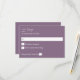 Envíe esta elegante y acuarela Plum Purple MOD Calligraphy RSVP con sus invitaciones para bodas y fiestas, incluyendo fiestas de graduación. con un fondo blanco. Consulte nuestra colección para ver la opción de la comida.