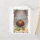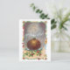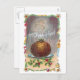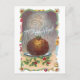 El vapor de un pudín de ciruela forma las palabras 'Feliz Navidad' y encima de eso una foto de Santa Claus. La frontera está compuesta por un tambor, muñeca, vela, cono, estrellas, bola, espada, caldo, cuerno, soldado de juguete y petardos Navidades en una vintage postal de 1908.